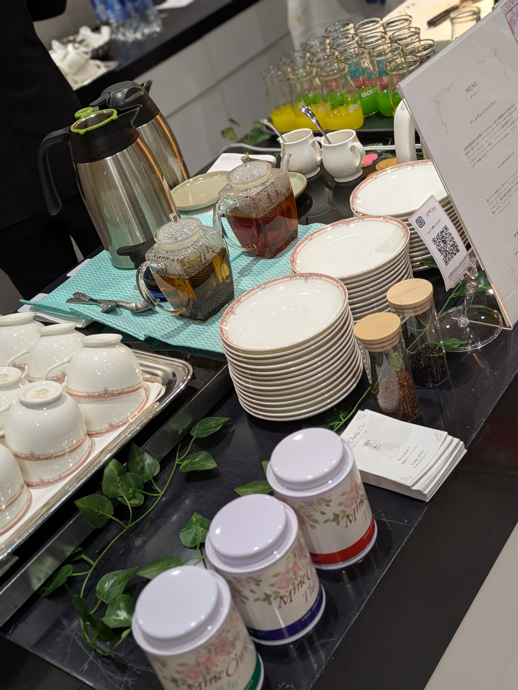 温かいドリンクと別途冷たいドリンクバーも用意されていた模様。