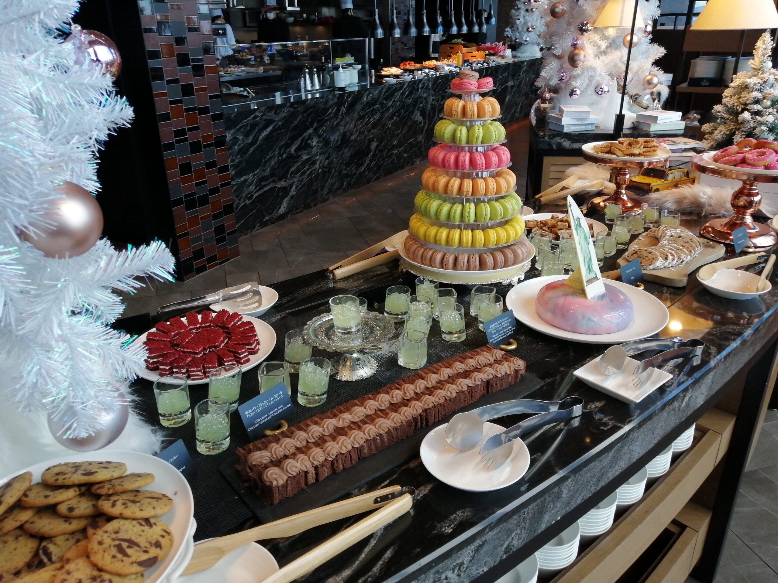 コンラッド大阪アトモスダイニングで開催中の「HOLIDAY IN NEW YORK」スイーツビュッフェ。