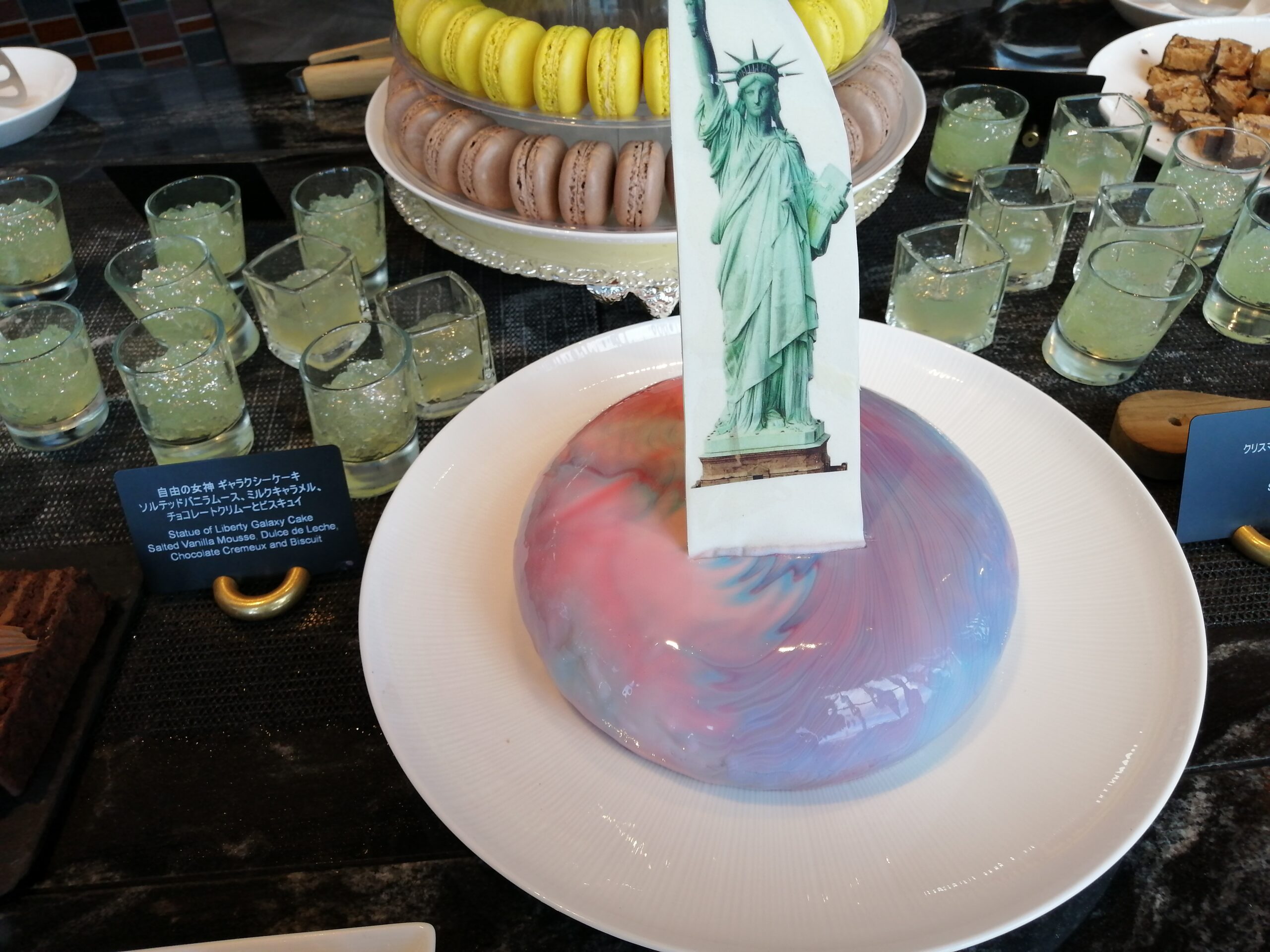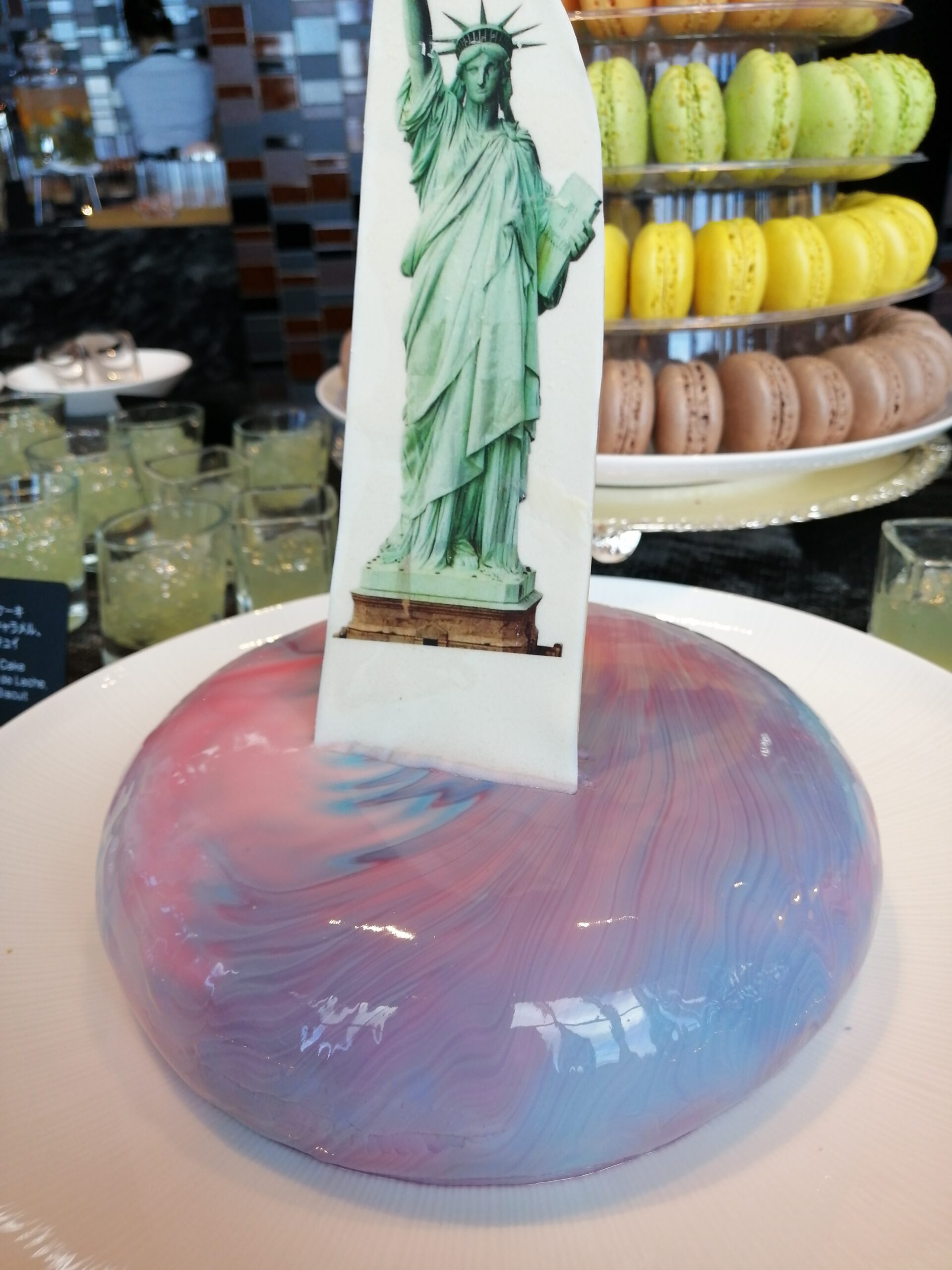 自由の女神がトップに立てられたニューヨークらしい華やかなムースケーキになっています。