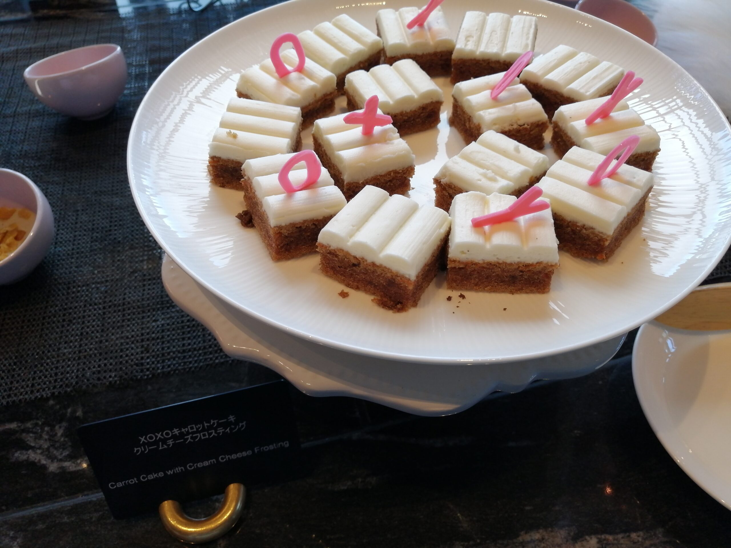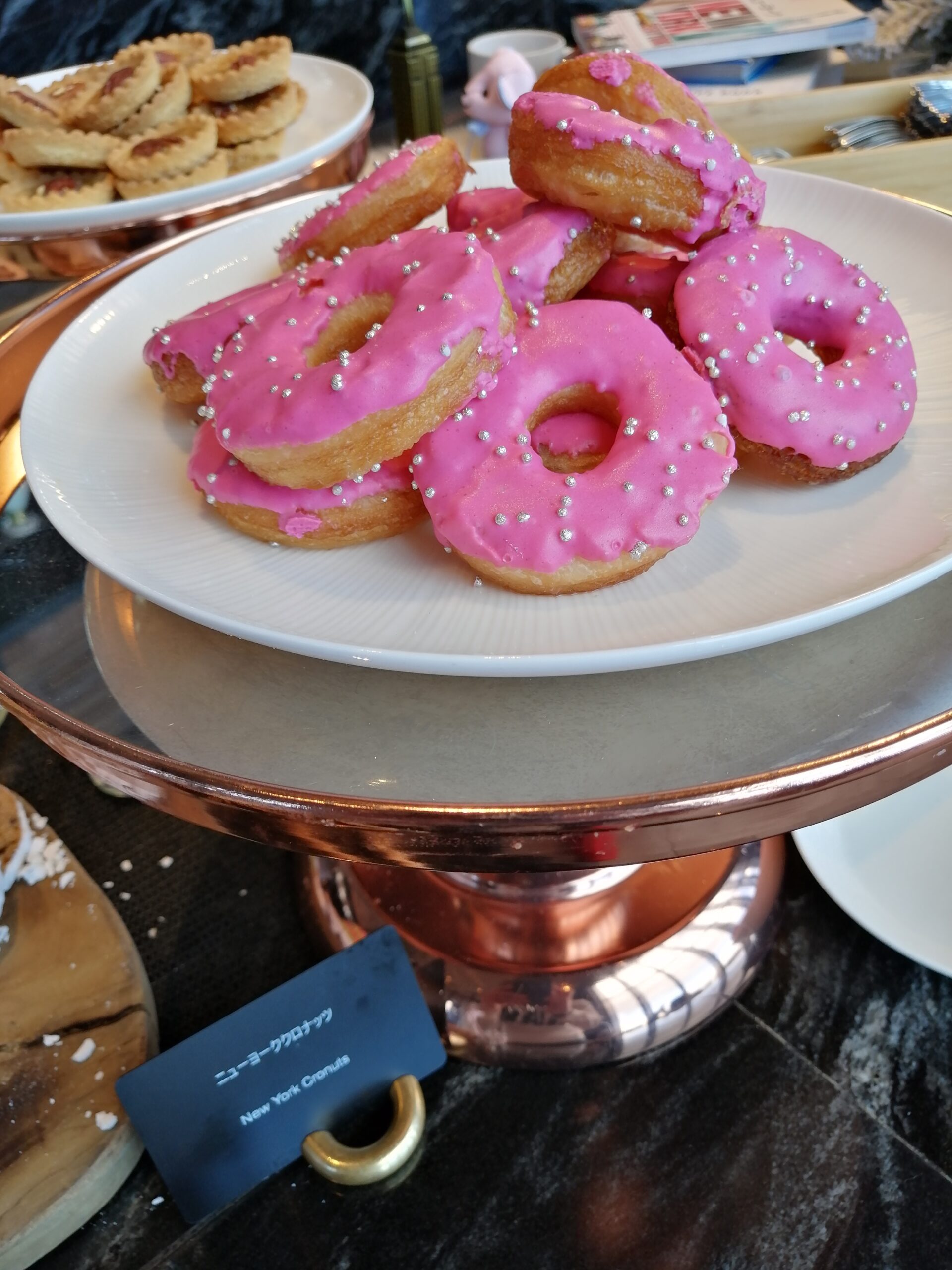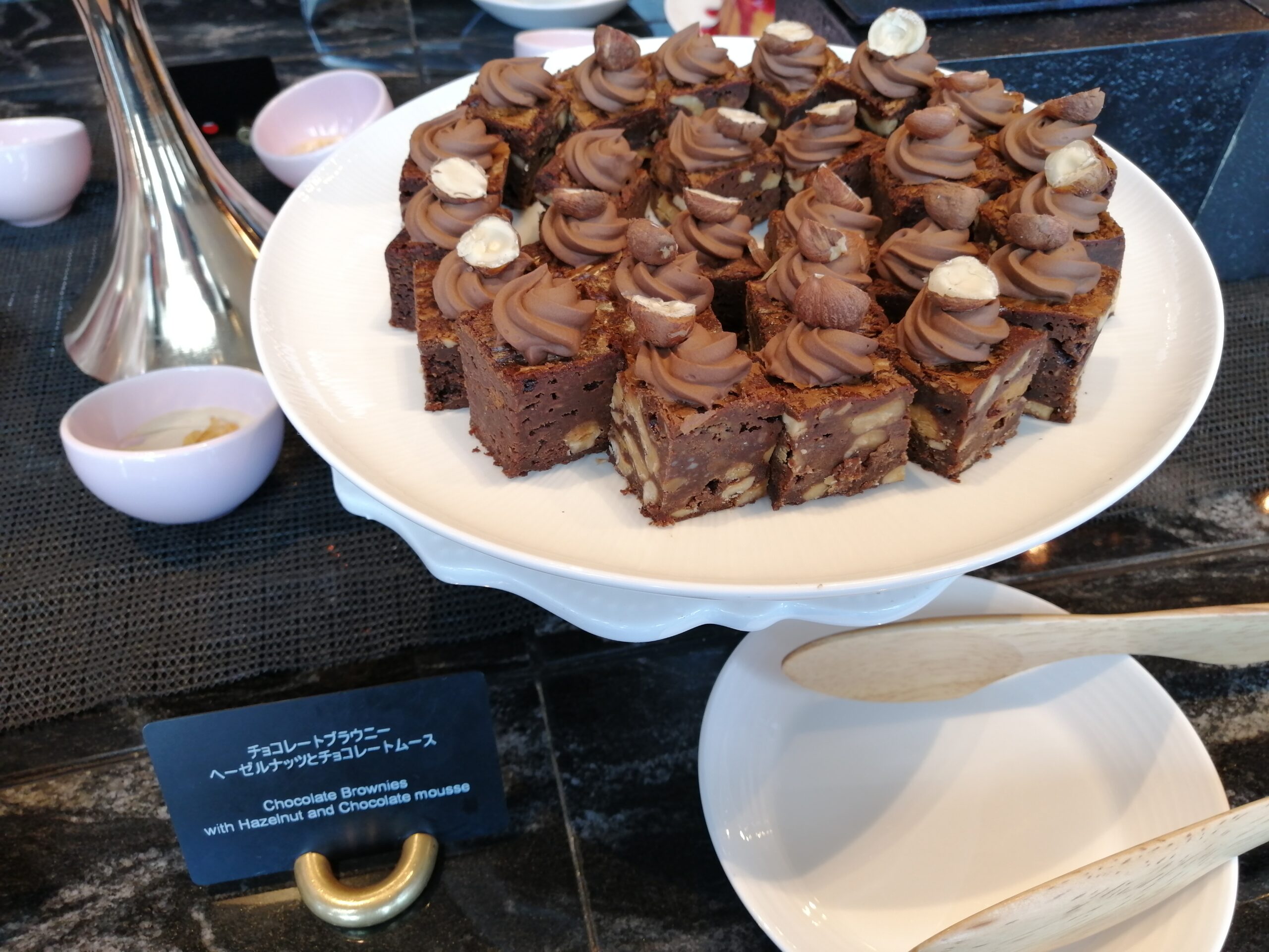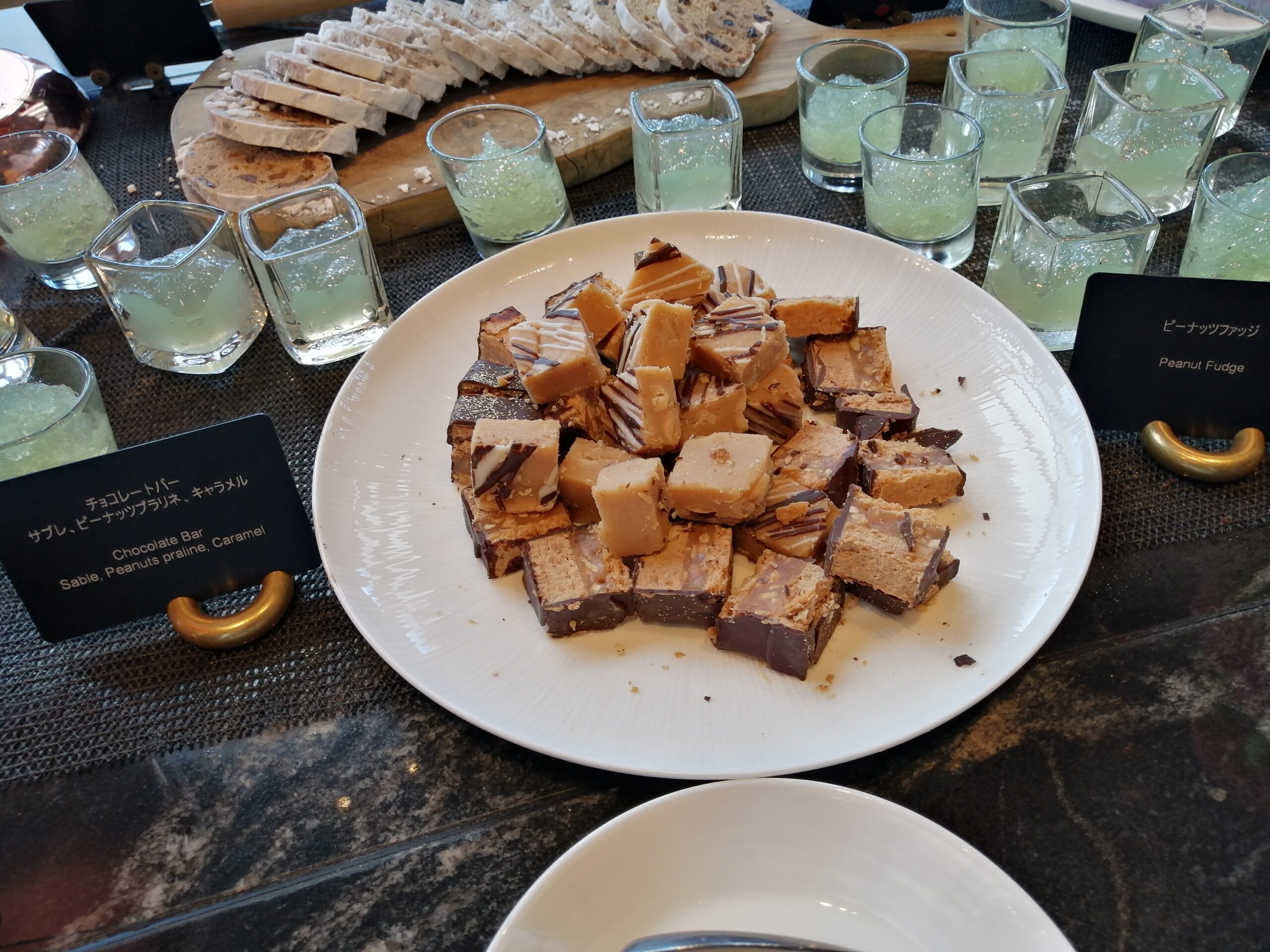 グラスとか焼き菓子なんかは余裕ありますけどホールのケーキとかは早い段階で消えちゃいますからこの辺早めに取っておく方が良さげですね。途中になるとぐちゃぐちゃになっちゃってインスタ映えとは程遠い存在に変わり果てますので…。