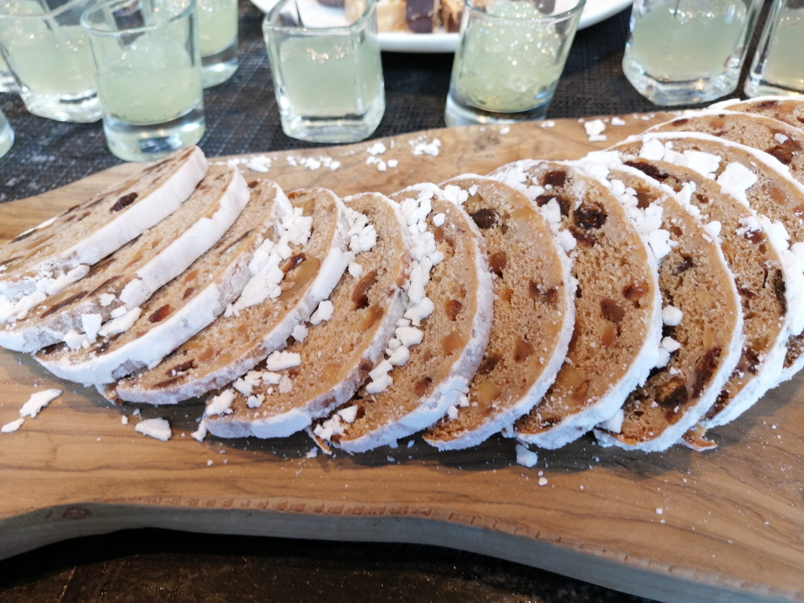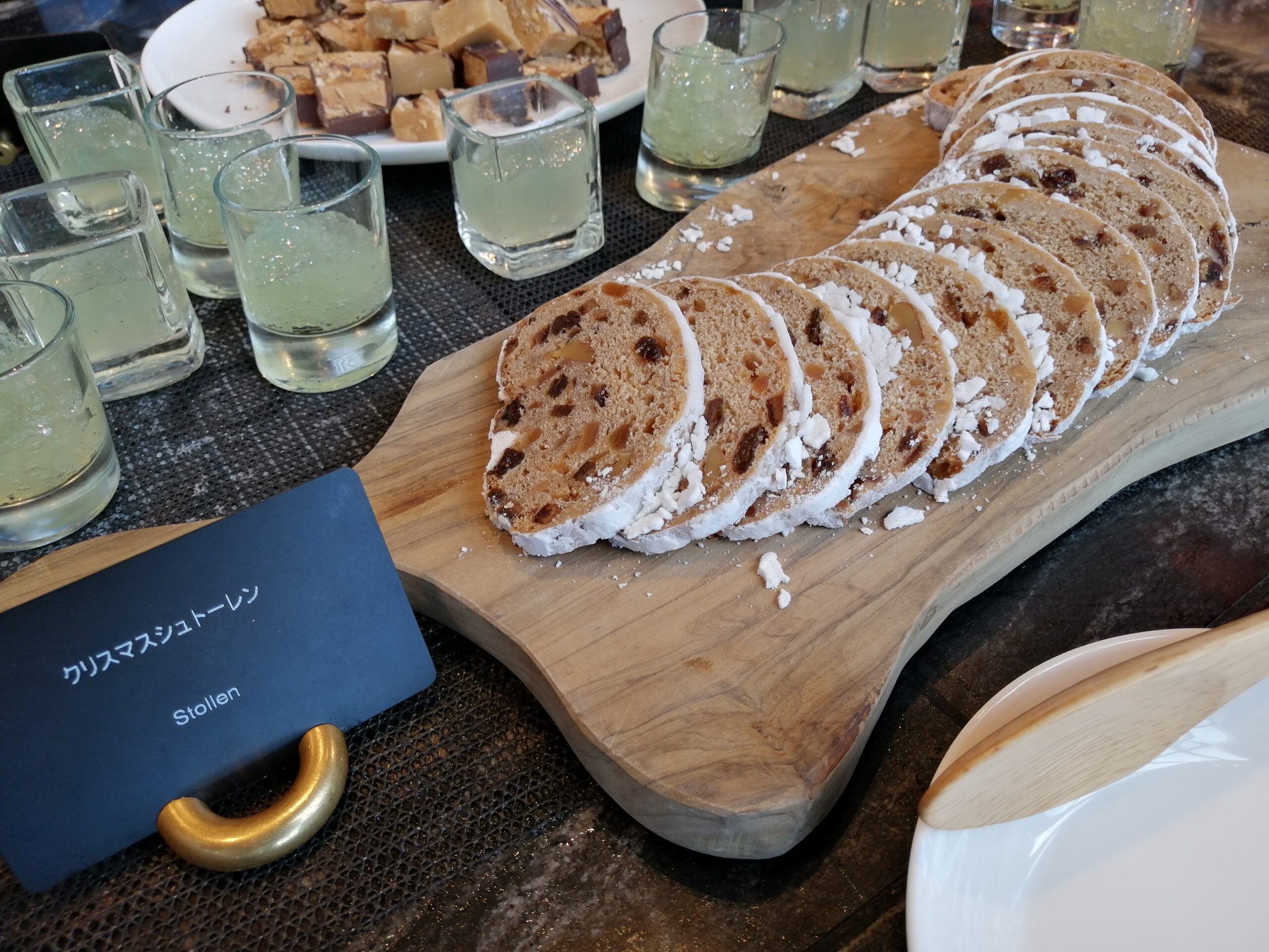 クリスマスシーズンには欠かせないシュトーレンもラインナップに入っていました。回りがシュガーコーティングされていて、パウンドよりもホロホロと崩れる生地の中には栗やレーズンといったドライフルーツが散りばめられています。こういう焼き菓子系のメニューもここは美味しいのでオススメです。