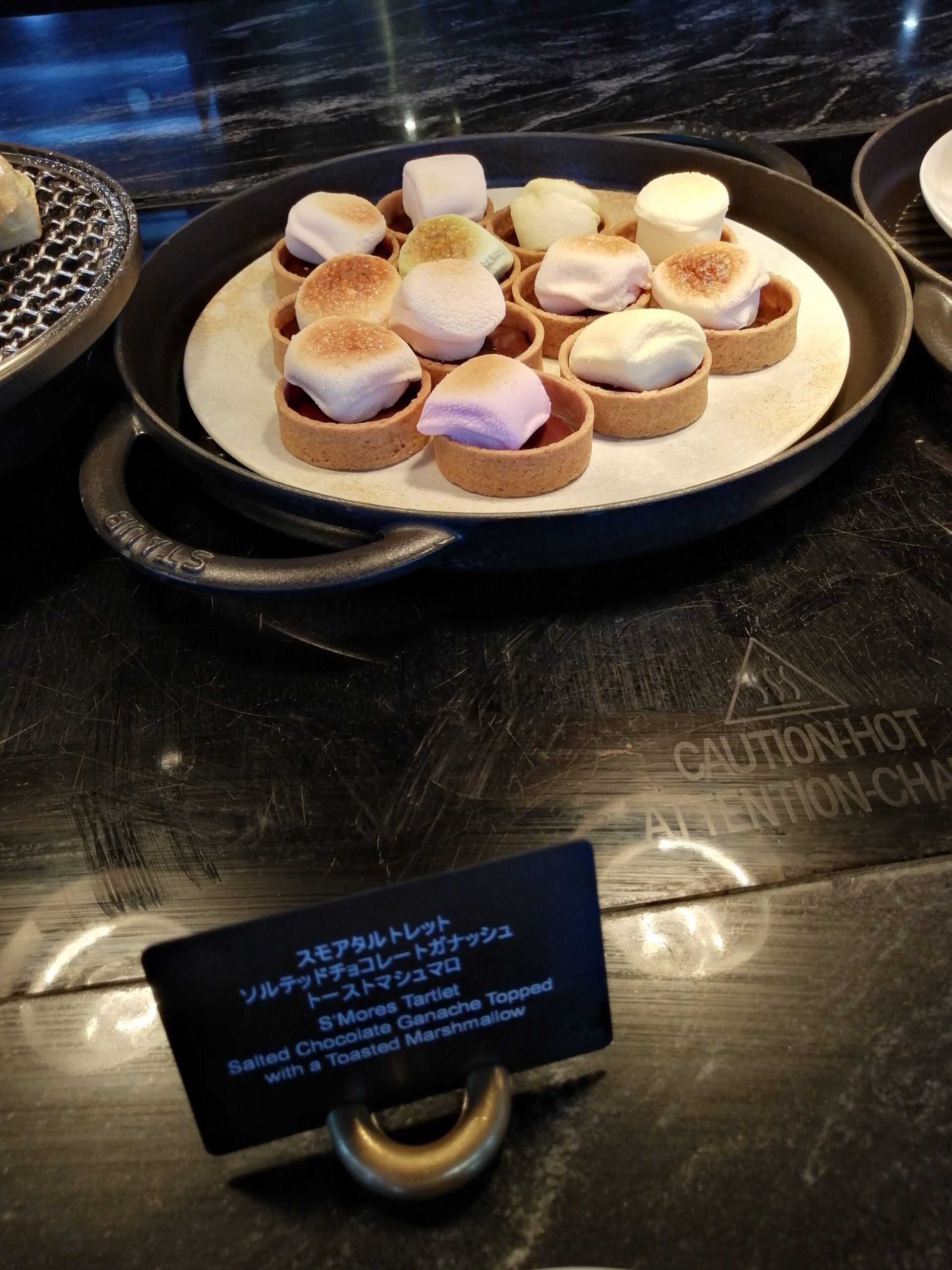 温かいマシュマロはとろける食感でその下にはこちらも温かいチョコレートソースが敷かれています。土台部分にはタルトレット系に使われる生地が使われていました。