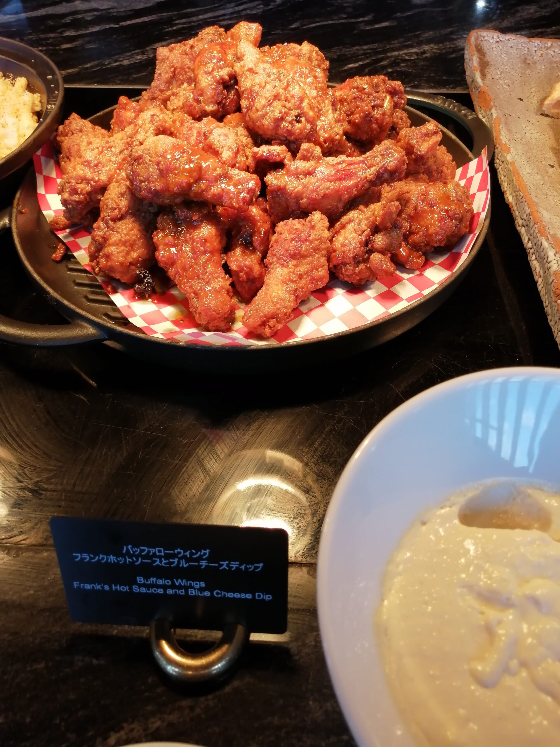 鶏の手羽元を使った揚げ料理なのですが少し辛めのテイストになっていて、横にあるチーズソースをかけて頂きます。