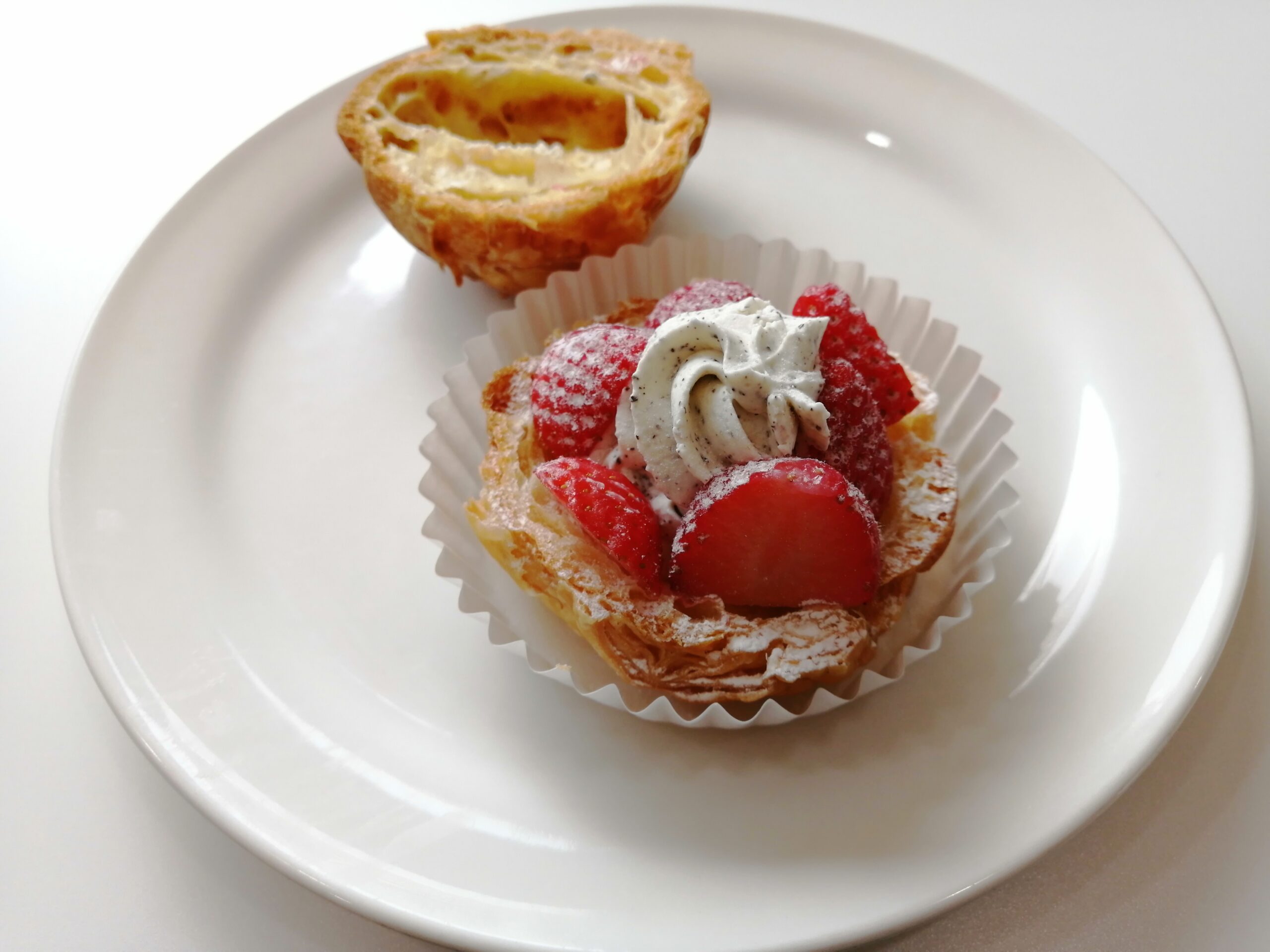 サクサクのパイ生地で包まれたこの季節にはぴったりの苺シュークリームなのですがこちらは少し変わり種。