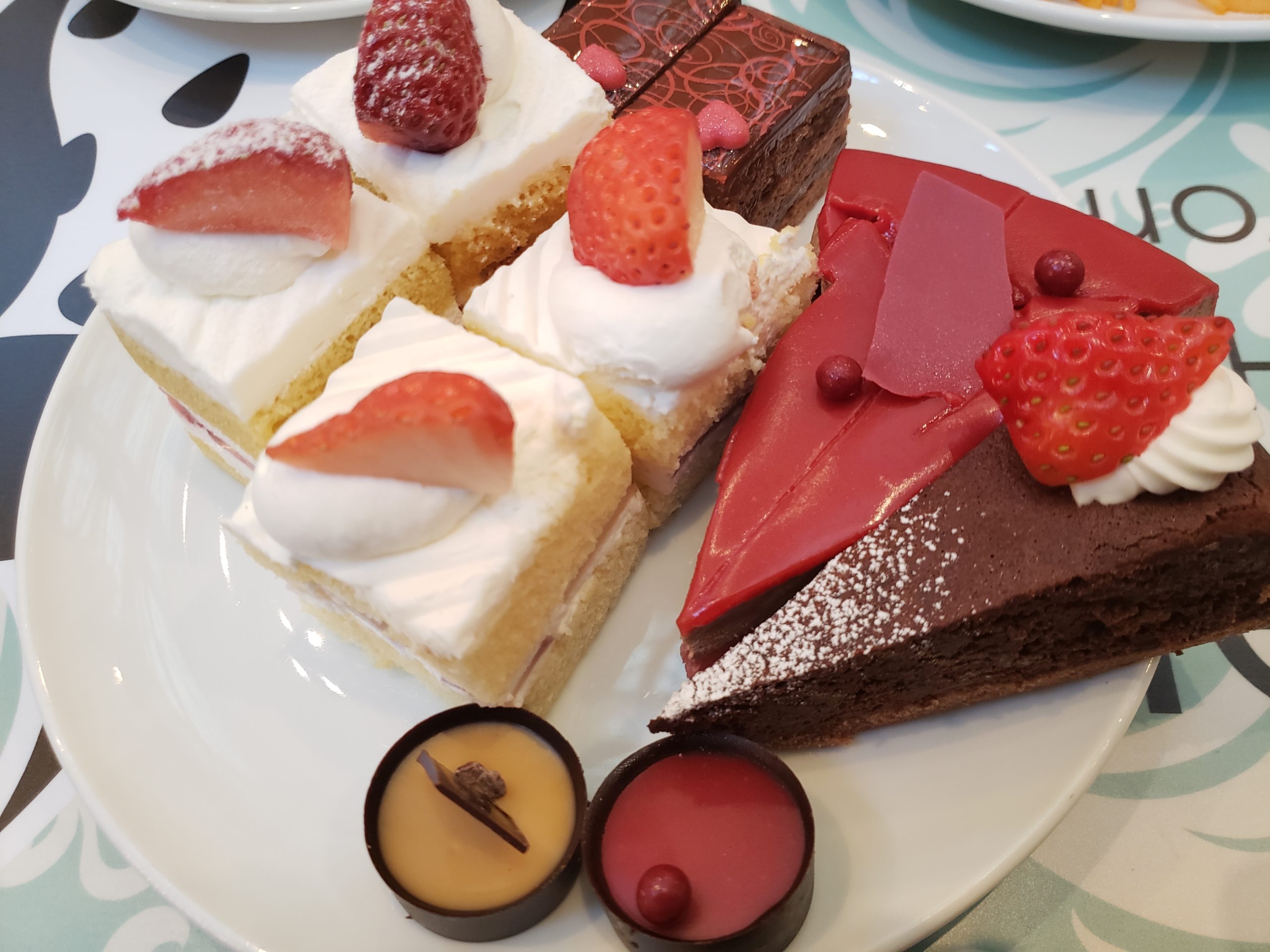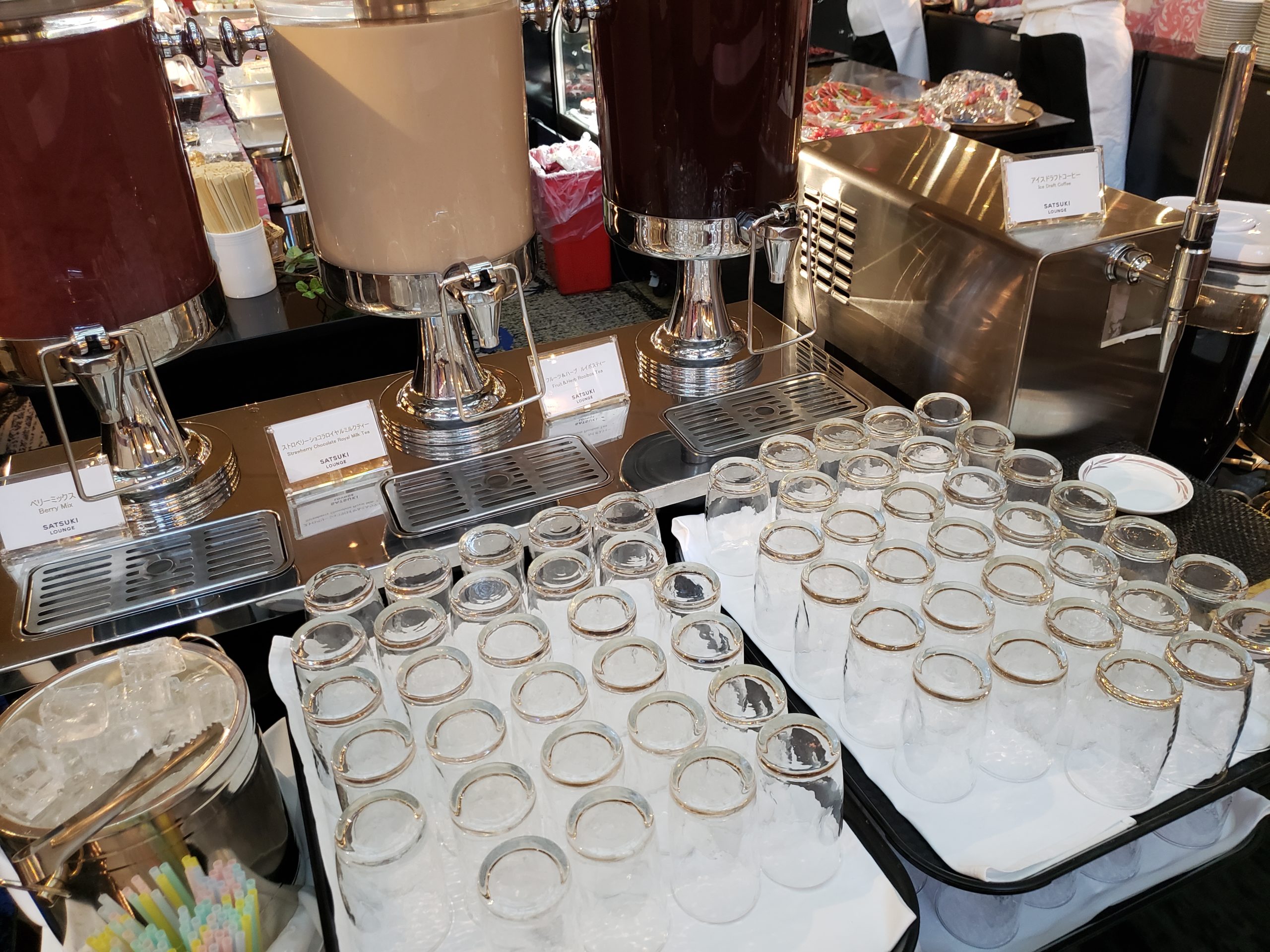 一応これでスイーツは全種類取ってきました。客のオーダーを受けてからサーブするまでの時間を短縮する為にいつもよりスタッフの人数も若干多く配置されており、てきぱきと動いてくれていました。ただ通常の女性スタッフだけではなく、男性スタッフもそれに駆り出されていた為に慣れない作業で手間取る場面も。こういうのは確かに女性の方がスムーズに行って下さるイメージが強いですからね。込み合うのは最初の混雑だけで途中からは待ち時間も無くストレスフリーでした。