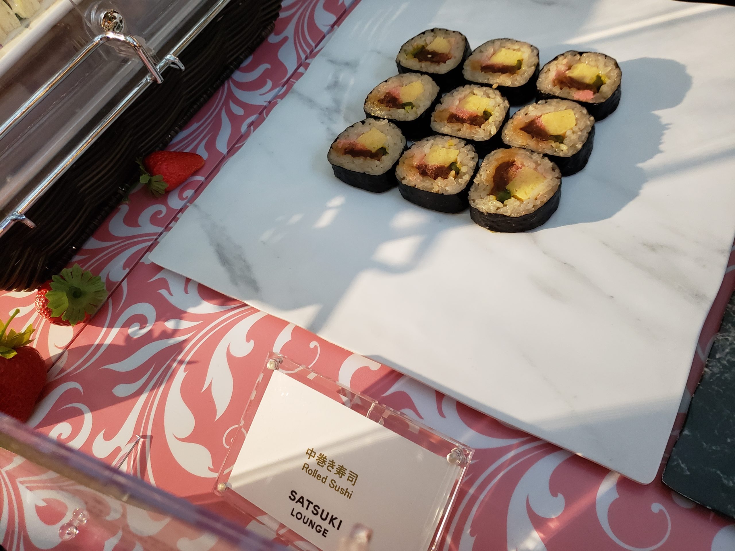 ジャムパンからのこの流れ。何故にいなり寿司と巻き寿司なのか。意図は解りませんがこれがニューオータニの流儀なのでしょう(笑)一応食べてみましたがあえて食べる必要ないです、はい。