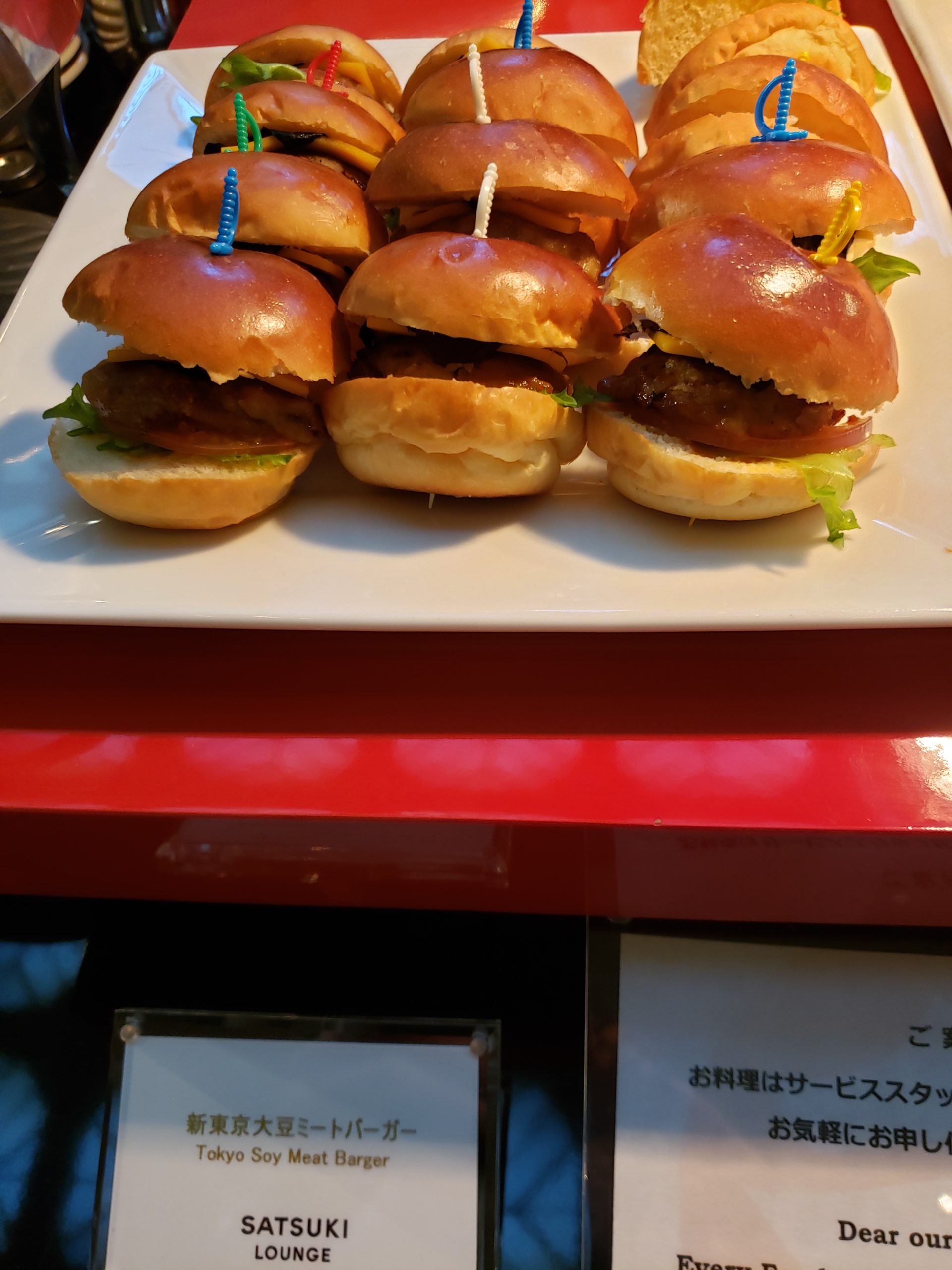 適当に軽食を取ってきました。ただ完全にチョイスを間違えましたね。大豆ミートバーガーがまさか早々に品切れするとは。補充もされなかったので元々の数も少なかったんだと思います。それなら1人1つテーブルまで配るスタイルにでもすれば良かったのに。食べれない人が出てきてる時点でビュッフェとしては致命的ですからね。