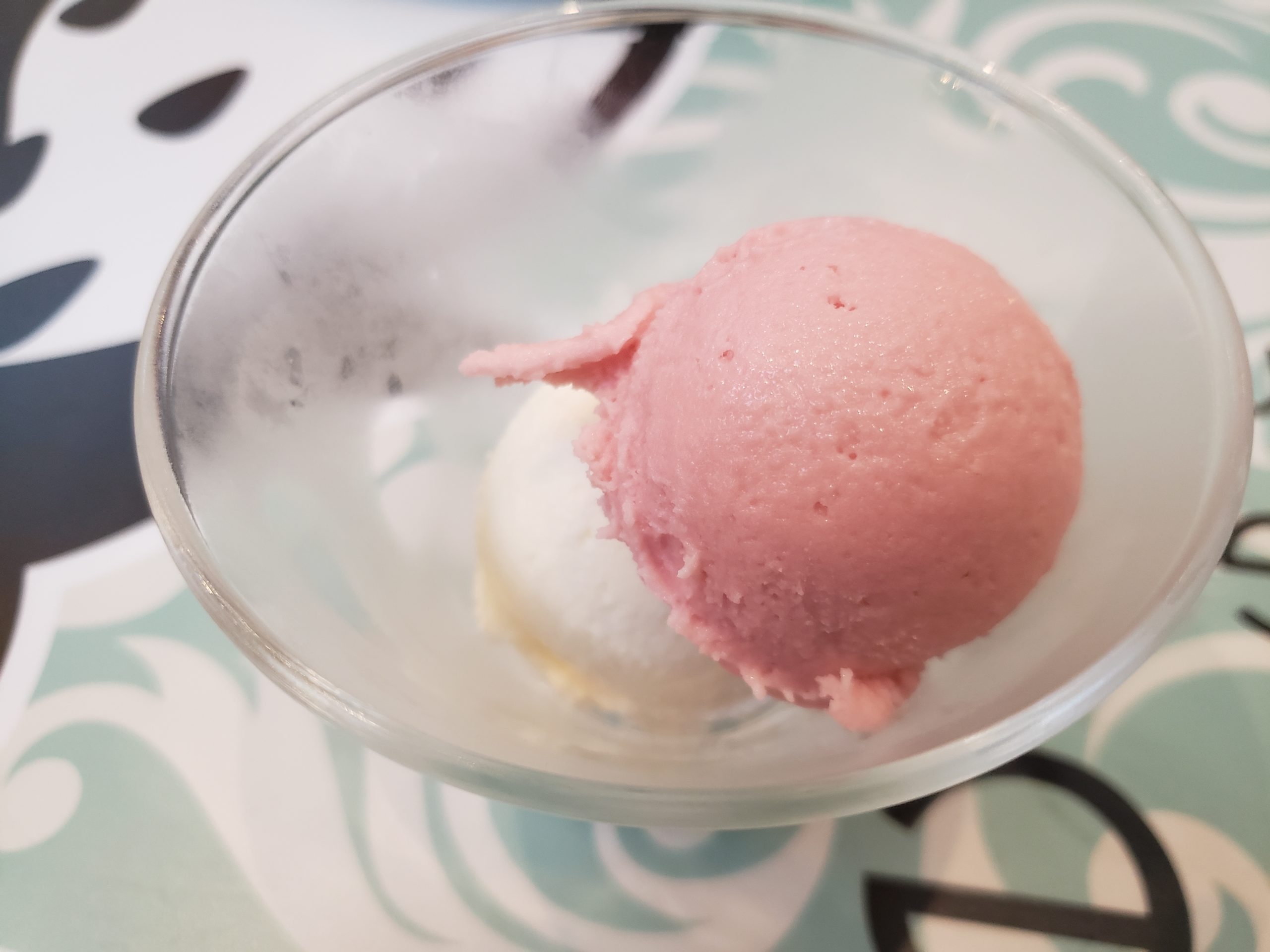お口直しのアイスクリーム。バニラと苺をチョイス。