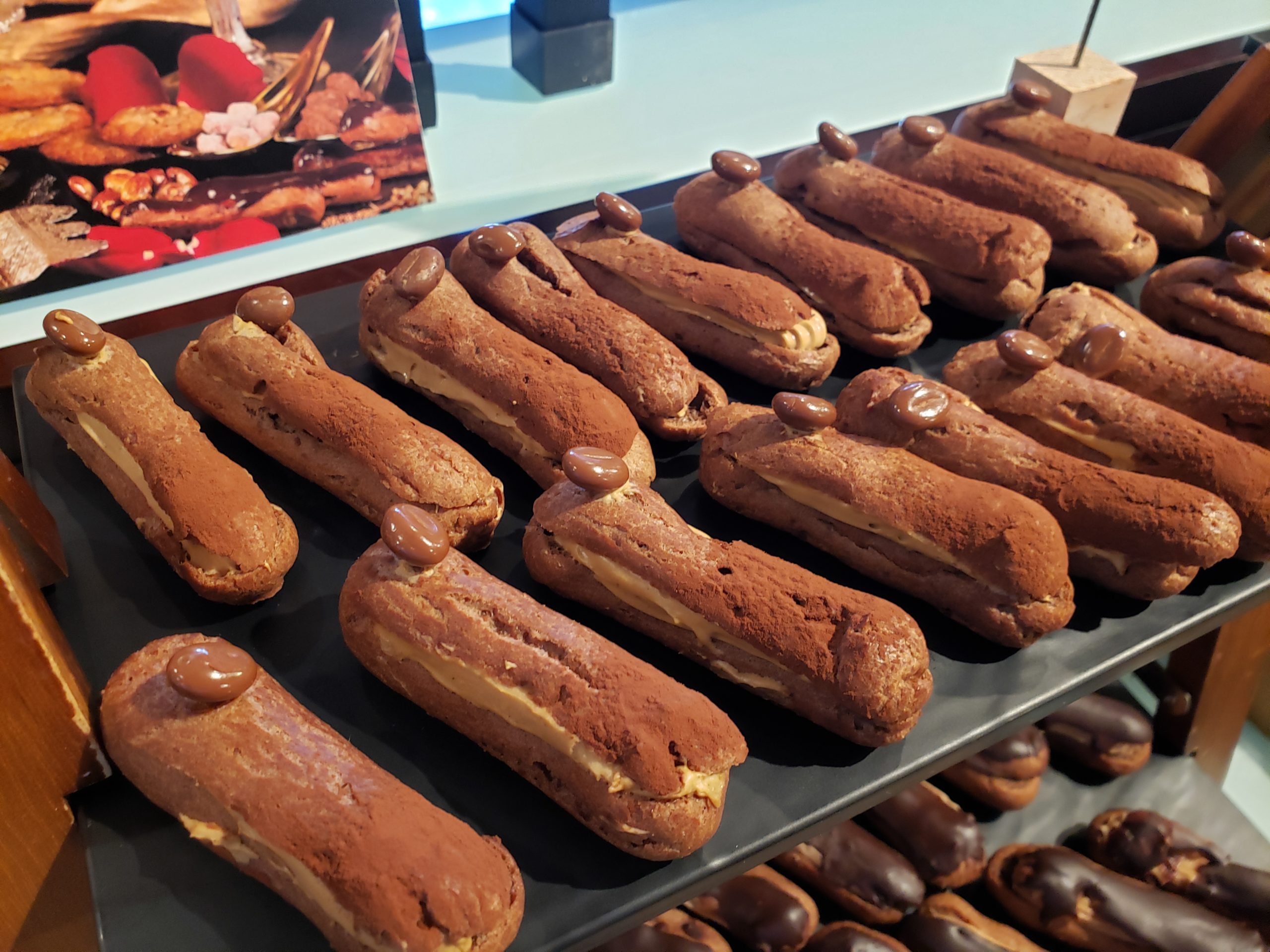 ビターテイストのショコラ生地とカフェオレのようなコクと香りが印象的なクリームの組み合わせが非常に素晴らしいです。後口もくどさを感じさせず、また食べたくなる余韻を残していきます。後から気付きましたが下の段に並べられていたものにはチョコレートがコーティングされていました。2枚目の写真で微かに確認出来るかと思われますが失礼しました。中身に関しては外側が異なるだけで同じものだったと思います。