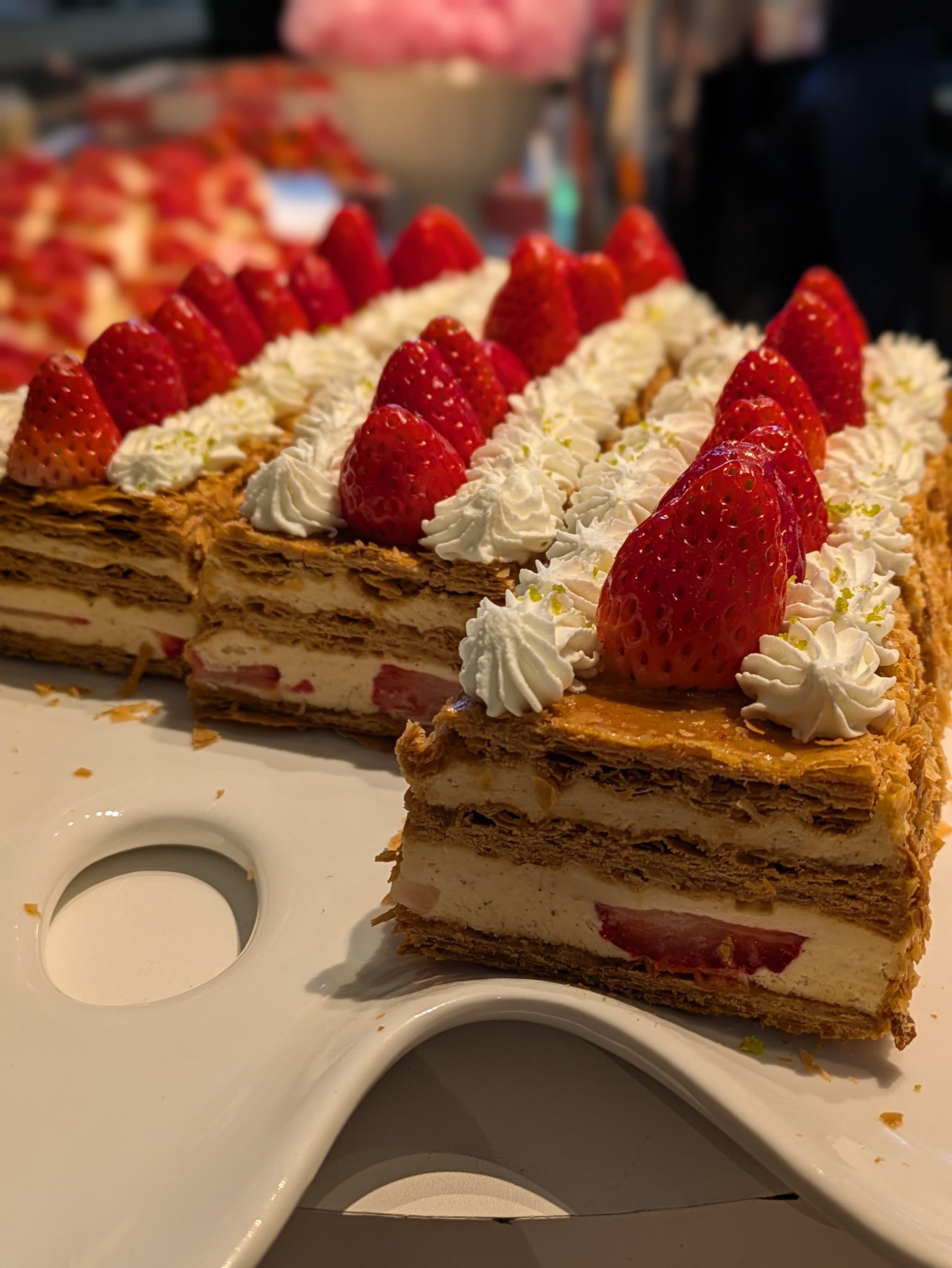 まず最初に私が並んだブロックは推しスイーツであるナポレオンパイが鎮座するエリア。このブロックには生の苺もあります←ここ大事。