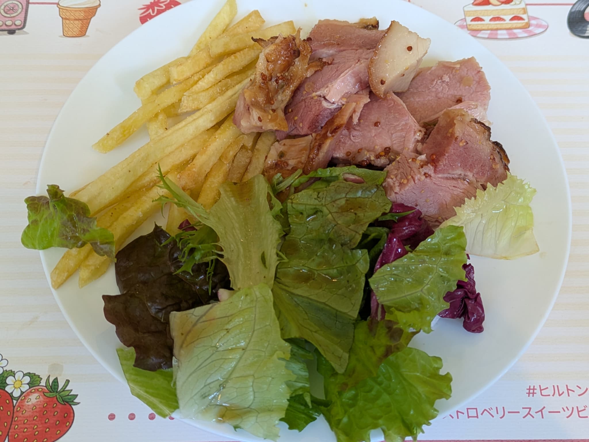 さてさて、ポテト🍟肉🥩サラダ🥗という見事なまでの3点盛り。