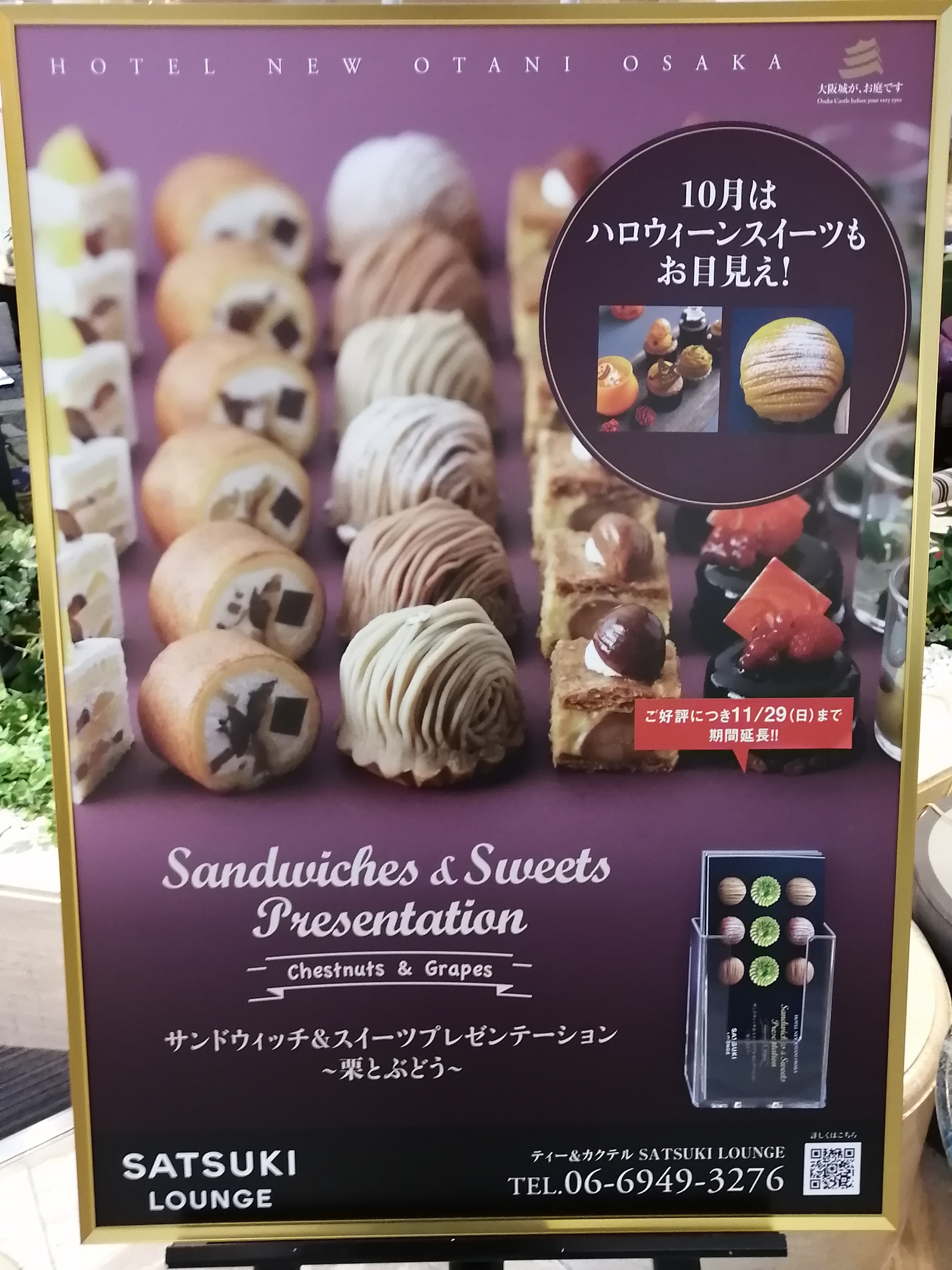 ホテルニューオータニ大阪SATSUKILOUNGEで開催中のサンドウィッチ&スイーツプレゼンテーション〜栗とぶどう〜に参加して参りました。