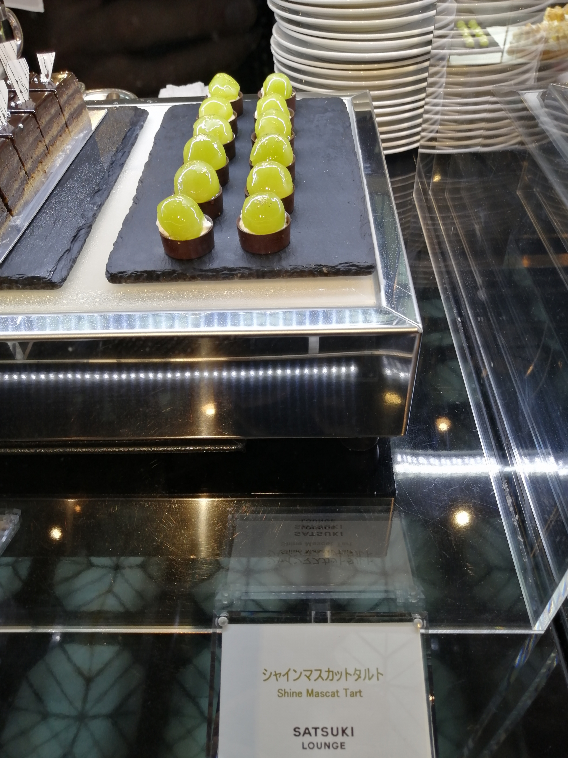 写真とはあまりに掛け離れたシャインマスカットのタルト。まぁイメージ写真と実際のスイーツが違うのはここだけでは無いんですけどこれは結構残念な感じですよね。正直タルト感もあまり感じられないですし、まぁちょこっと摘む程度のクオリティかと思われます。