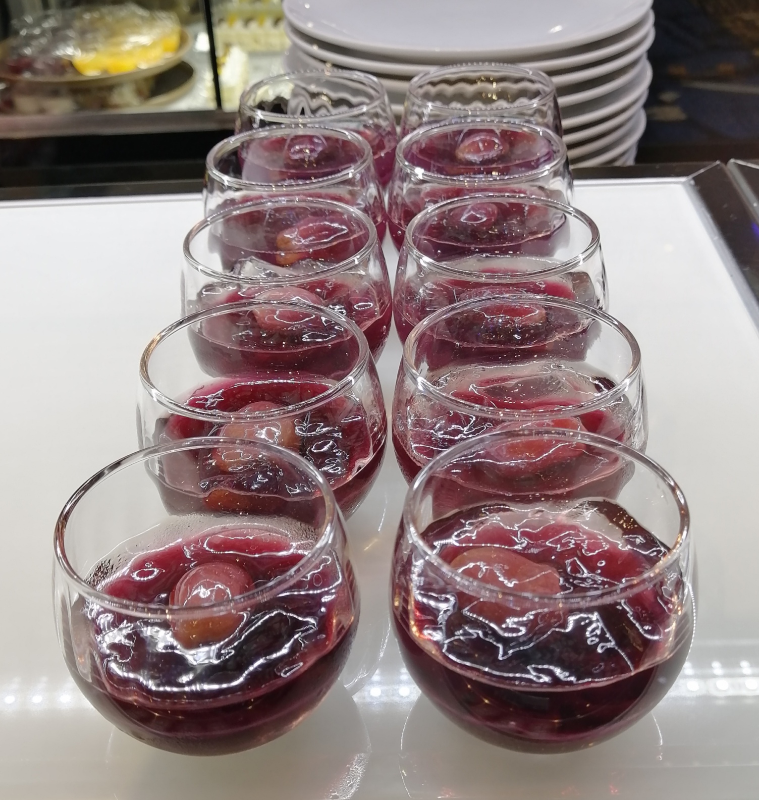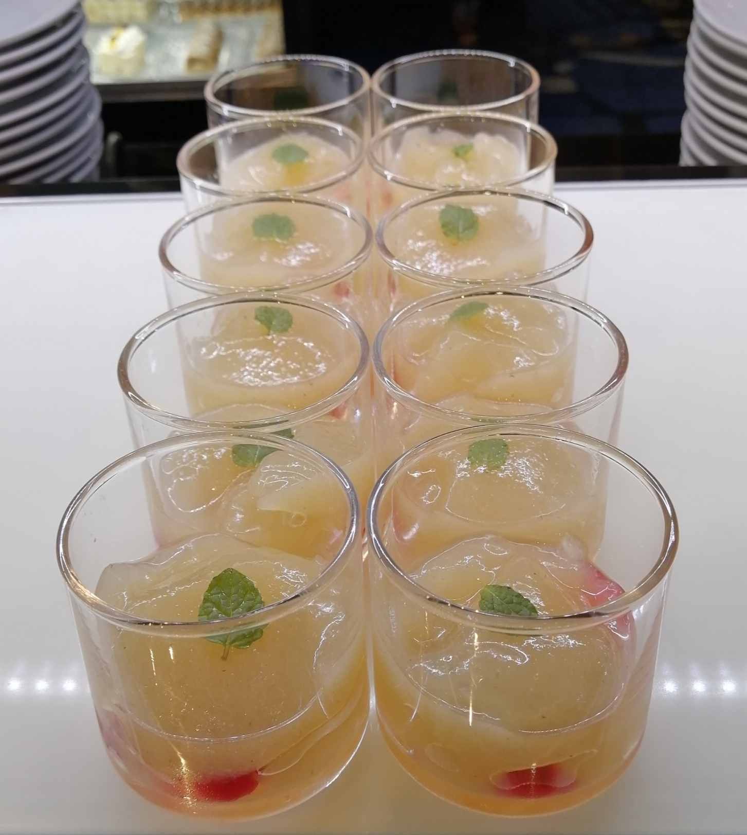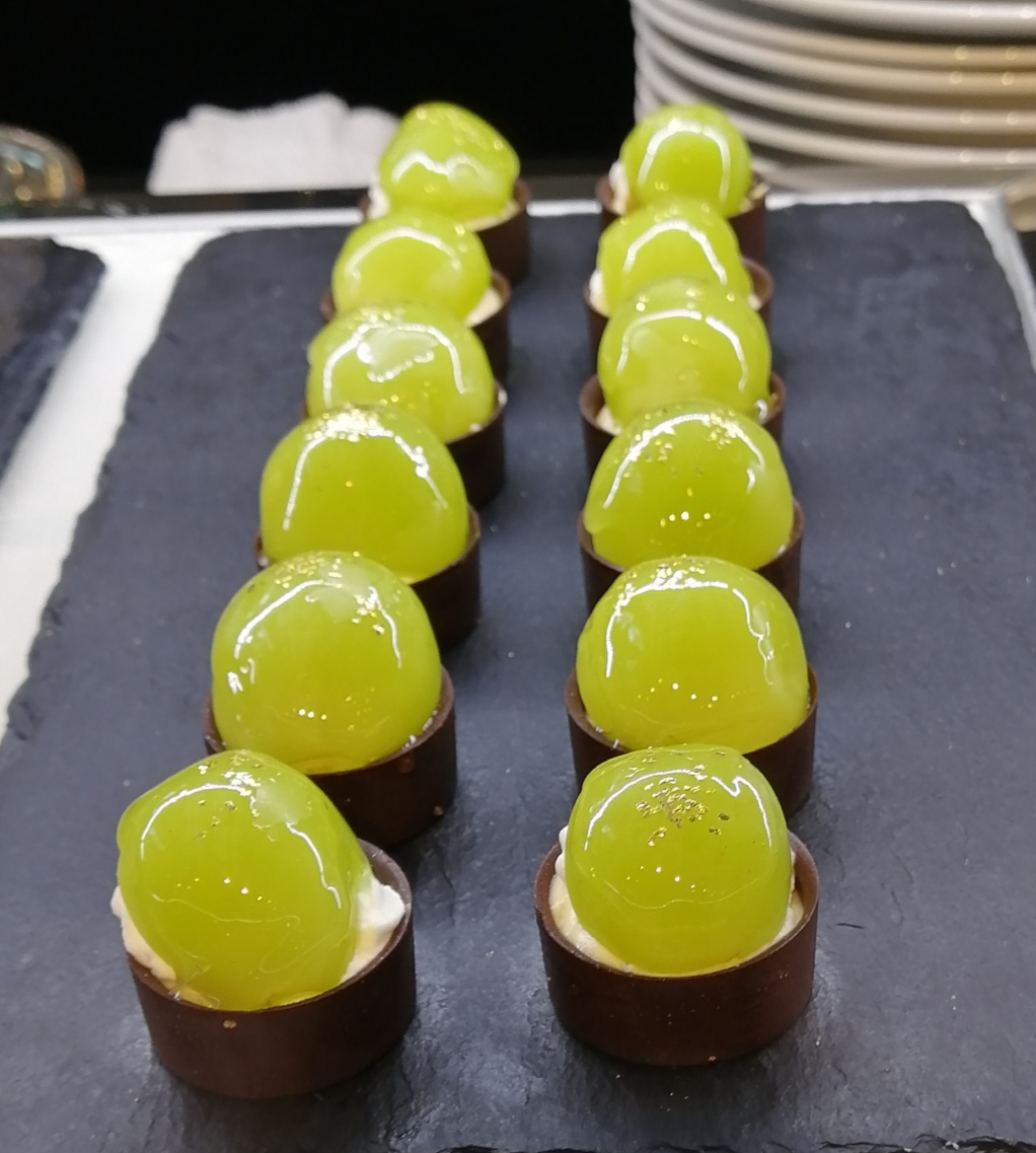 テーマが栗とぶどうだったのもあり、グラスデザートは比較的さっぱりしたテイストのものが大半を占めていました。こちらは爽やかな酸味が嬉しいシークヮーサーのゼリー。