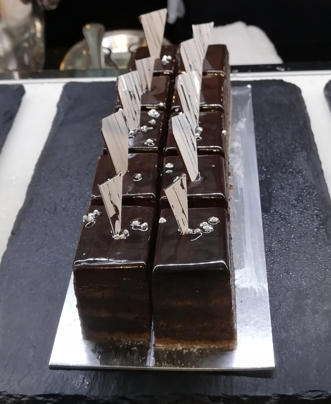 艶やかなグラサージュショコラが美しいダークテイストのオペラ。多分今回のメニューの中では一番苦味を強調した内容だと思われます。チョコレート自体も濃厚なものなのでチョコ好きなら満足感としては高いと思いますよ。小さなお子さんには少し苦味が強いかも知れませんね。パリブレストの次に今回気に入ったメニューでした。