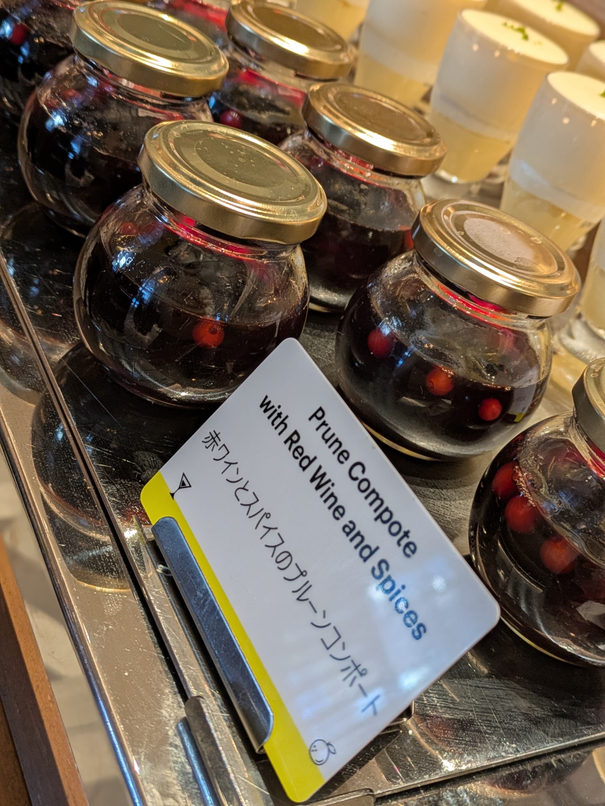 中にはスパイスを加えた甘い赤ワインソース&大きなプルーンコンポート、酸味の強い赤スグリの実が入ったシンプルな内容でした。