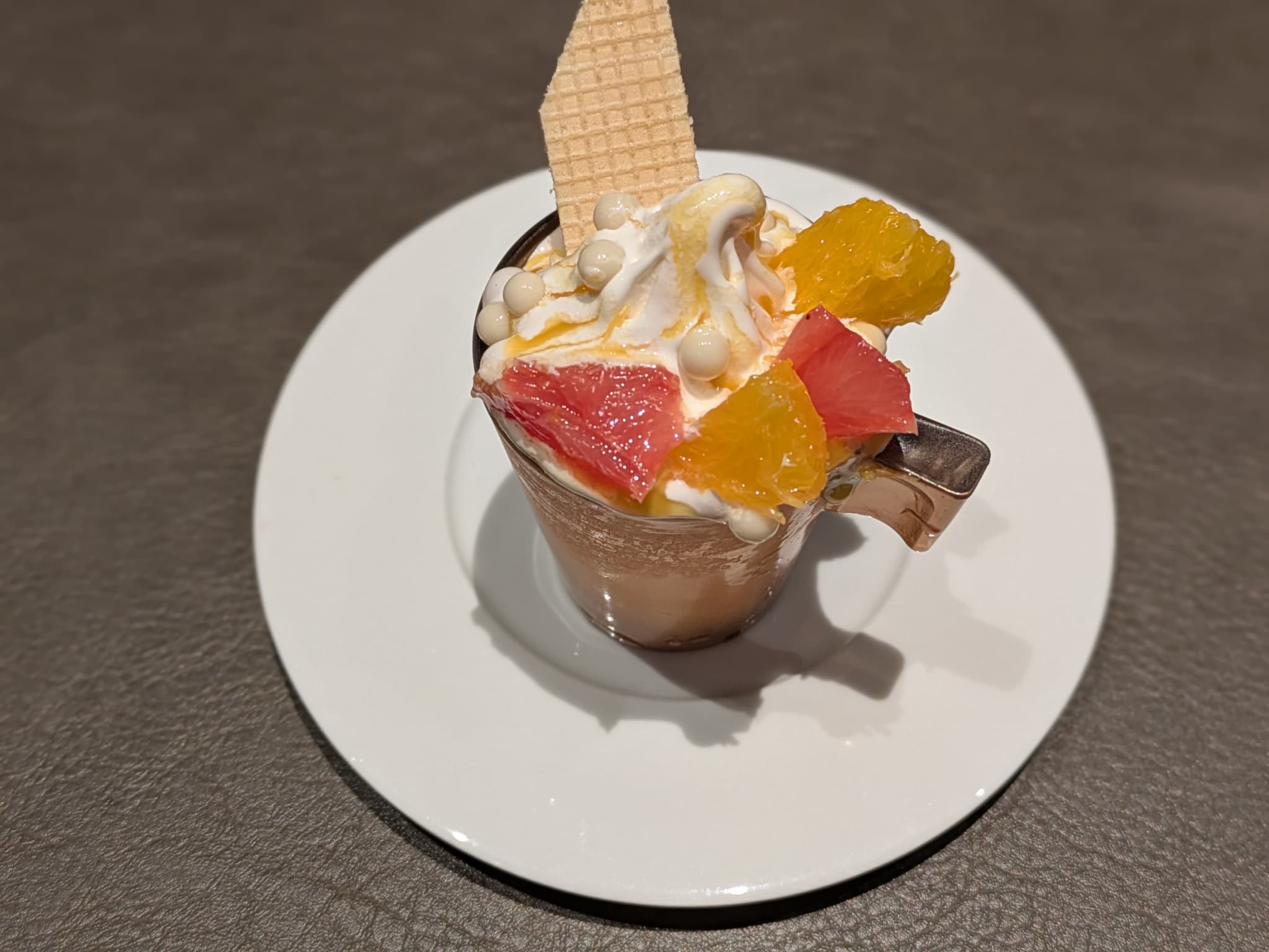やや洋酒の風味は強めではあるもののグラス下段のレモンクリームがとても素晴らしい役割を担っており、グラスの中だと1番印象に残りました。