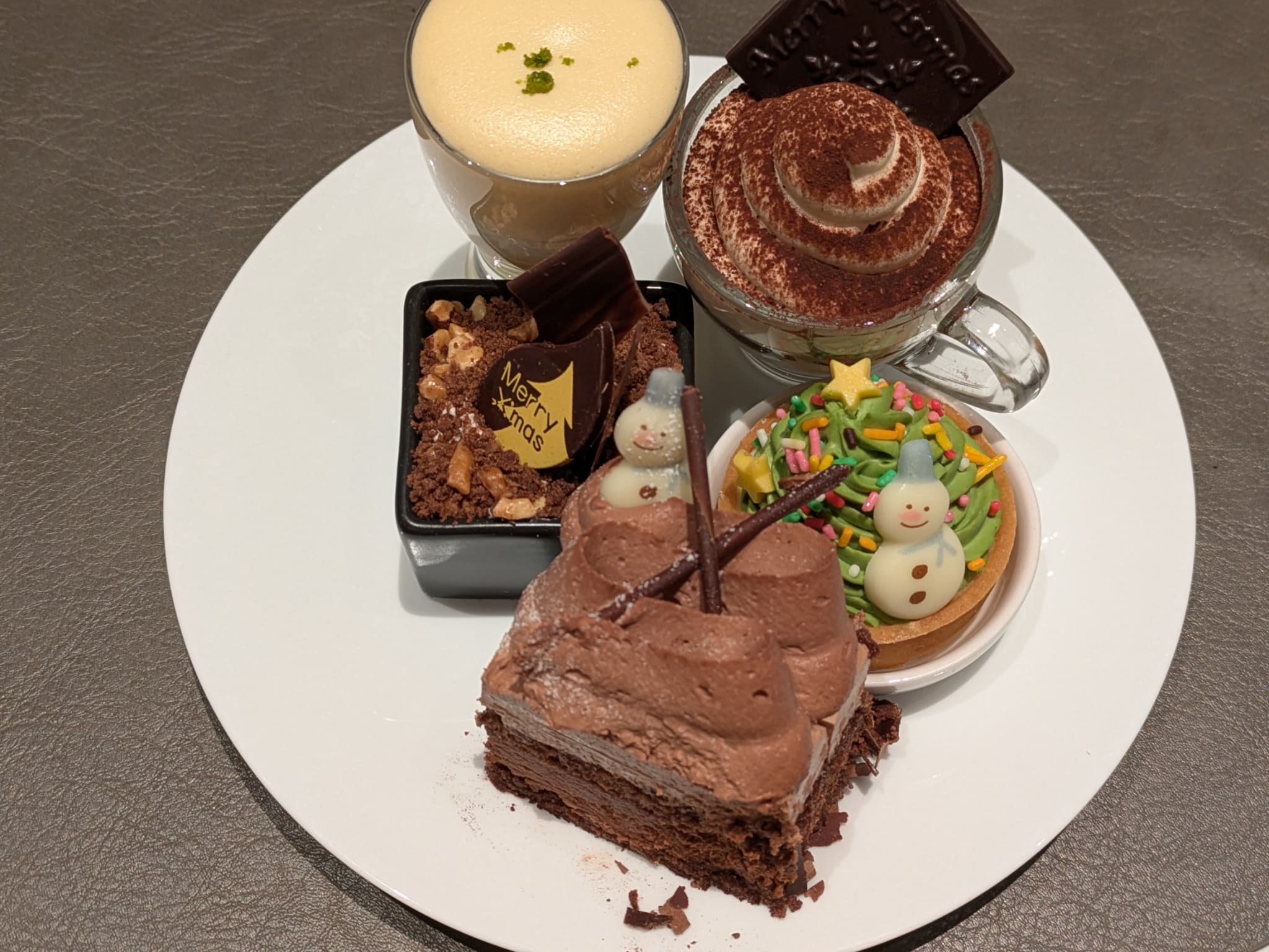 トップには鮮やかなグラデーションのチョコレートコポー、Xmasのメッセージ入りチョコレートが乗せられています。