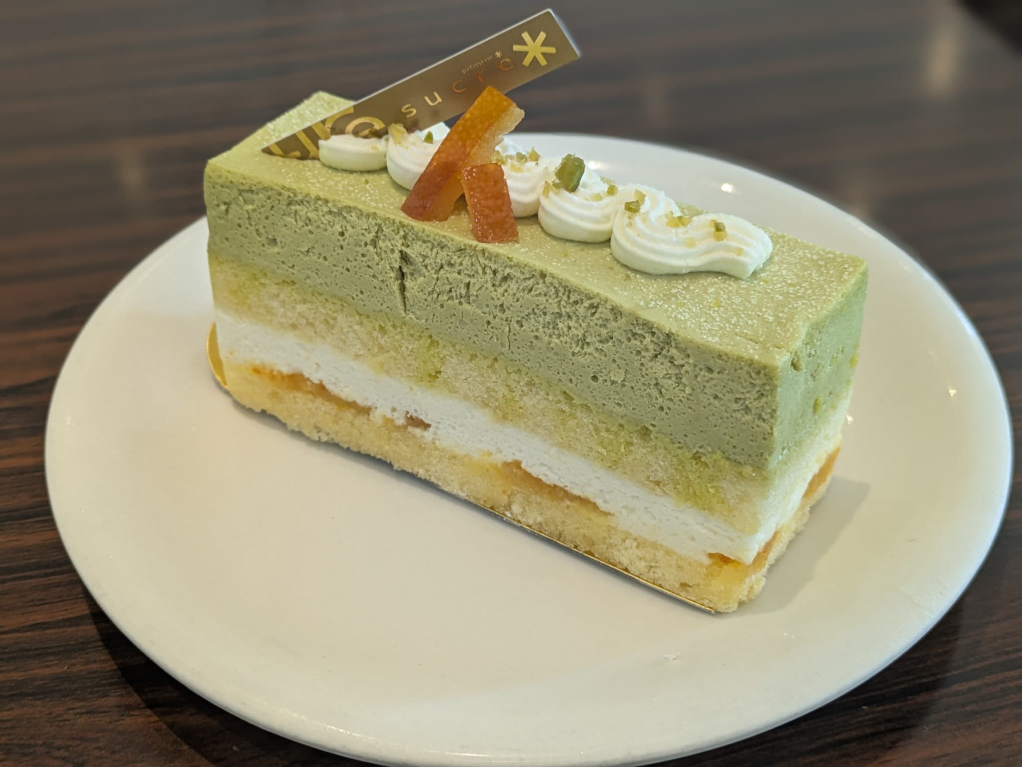トップには抹茶風味のクレームブリュレが乗せられた変わり種。ただキャラメリゼしてある部分のガリガリ感は無かったです💦