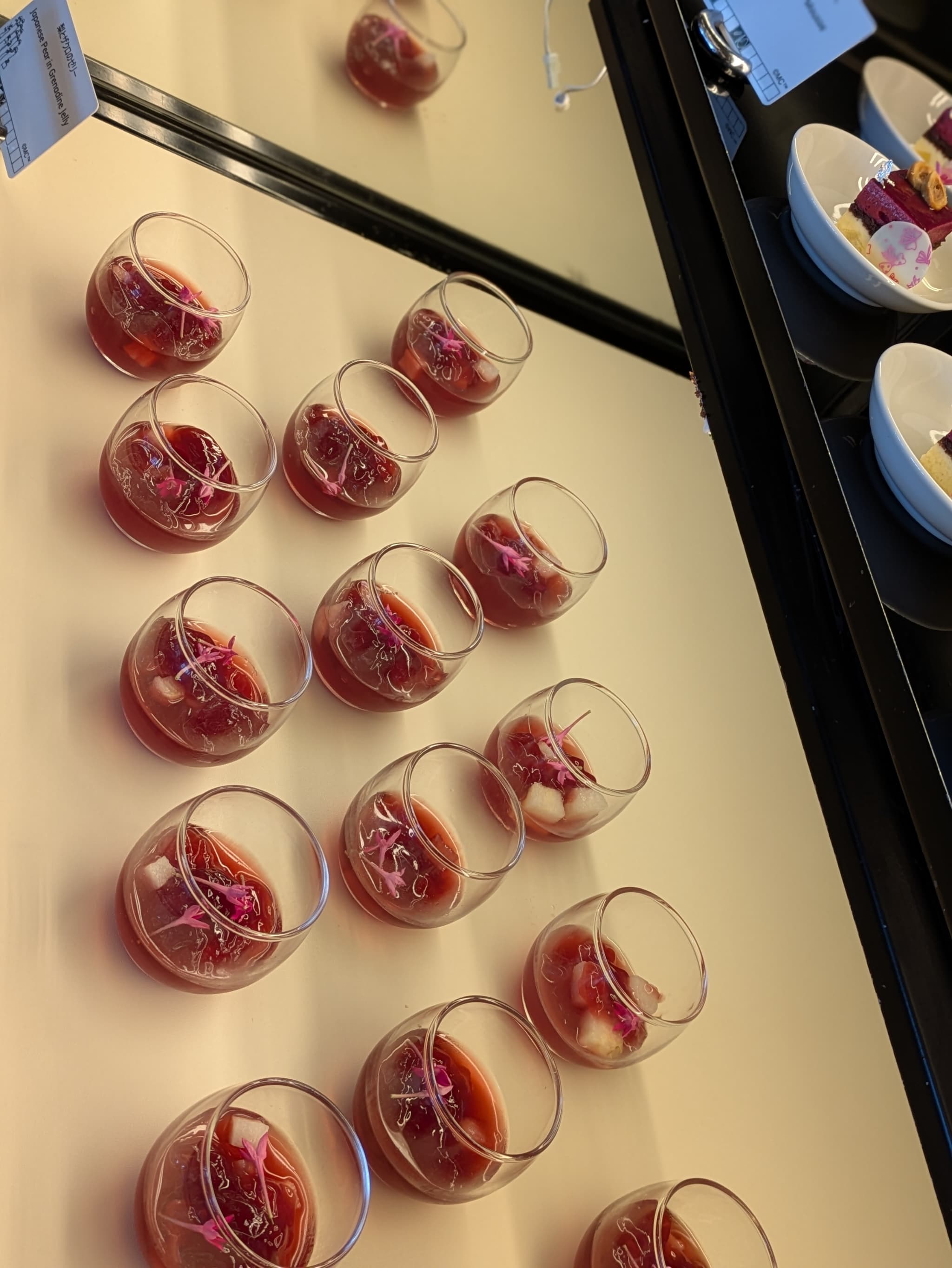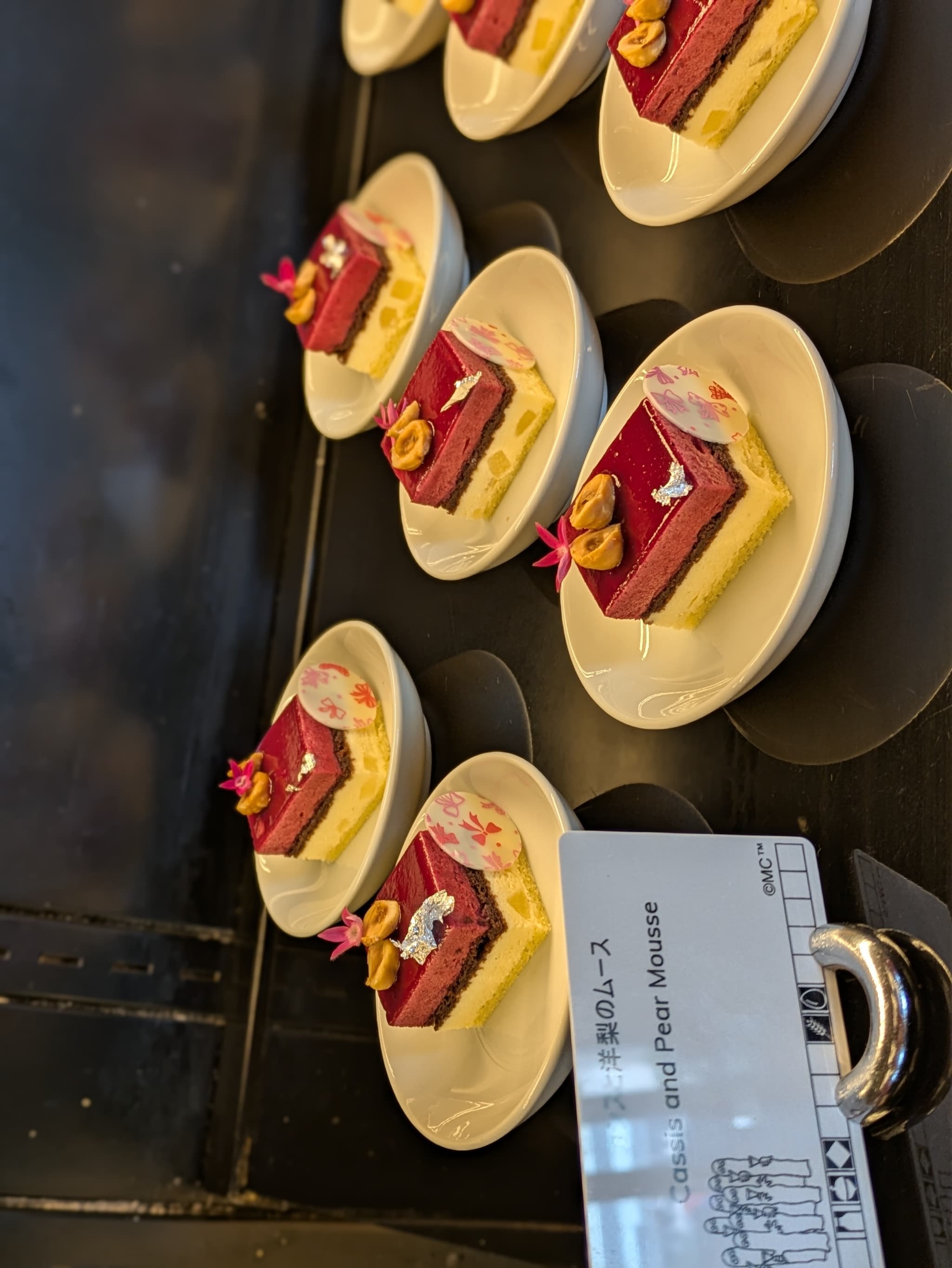 トップには赤スグリが乗せられており、抹茶ソースと抹茶&シャンパン風味のゼリーが入っていました。アルコールはそれなりです🙆