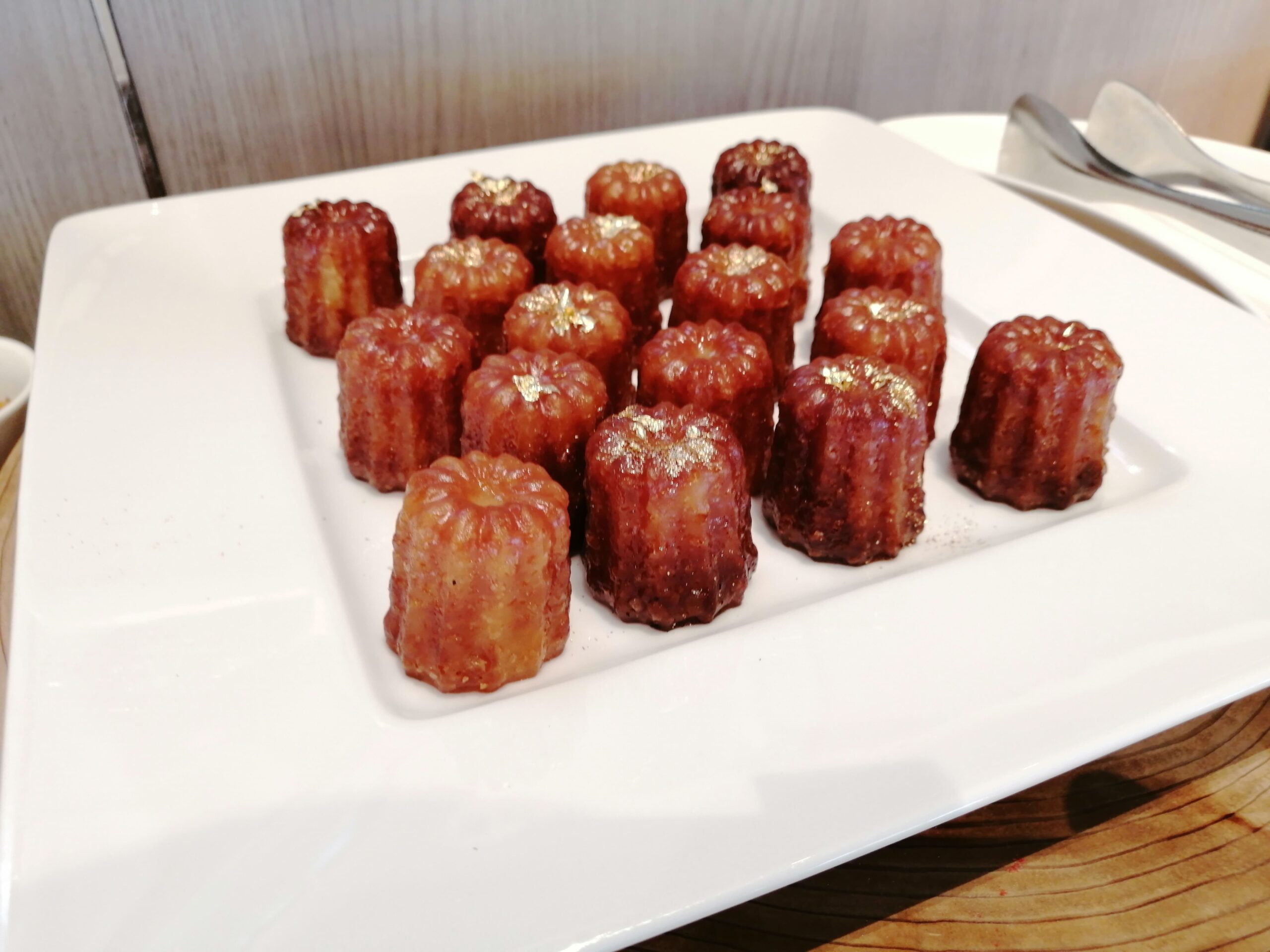 サクサク感は感じず、全体的にもちもちとした食感のカヌレでした。