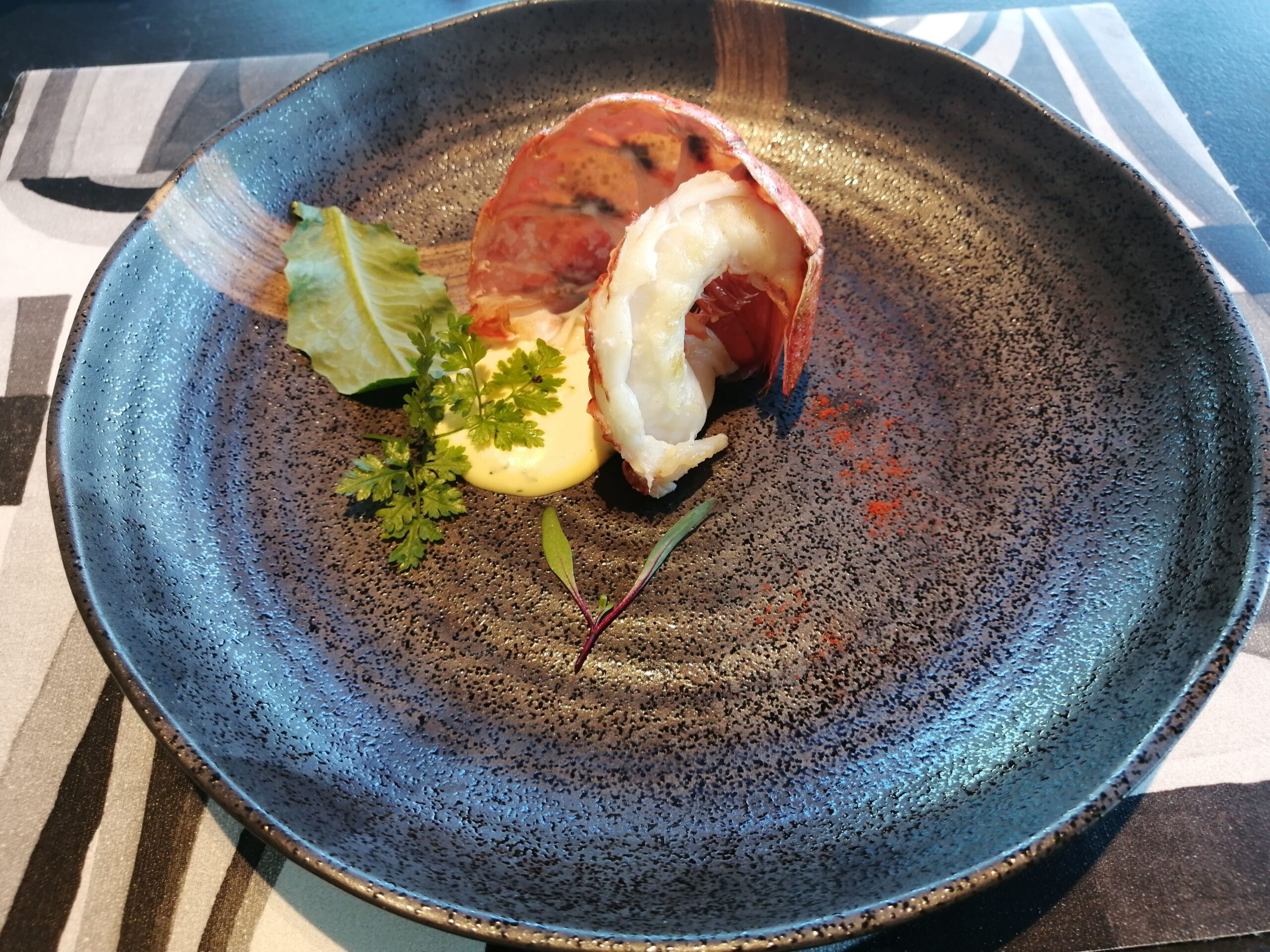 各テーブルまで運ばれてきたオマール海老のグリルです。こんなのが付いてるとは直前まで知らなかったので少し驚きました。